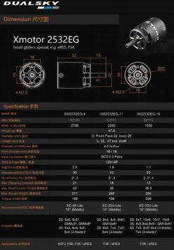 The Dualsky XM2532EG-16 is a high quality cased outrunner with a Kv of 1550 RMP/V for models weighing 350 – 800g.