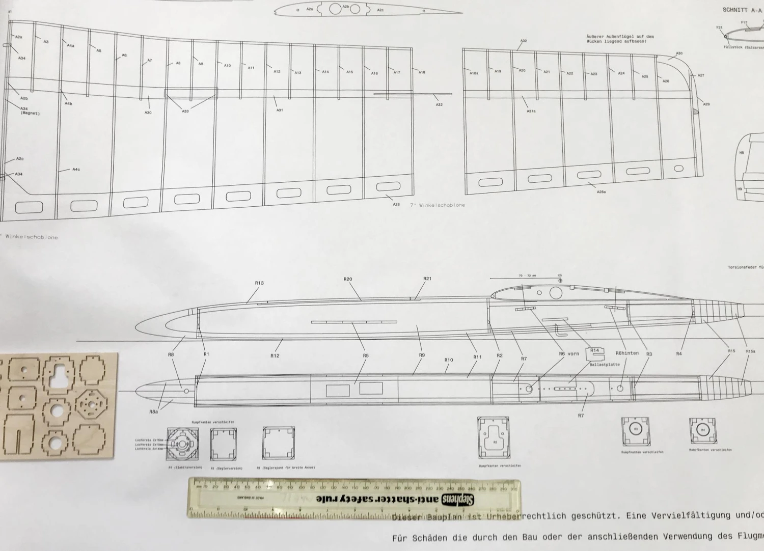 The design is simple, functional and robust. The model combines a very good glide angle with excellent thermal performance and good-natured handling. Although the Fresh was designed to win F3-RES competitions it also makes an excellent sport model. The model comes with two fuselage front formers, alowing it to be built as a pure glder or an electric glider. The electric version is designed for 30 mm spinners and the max internal motor diameter is about 25 mm.