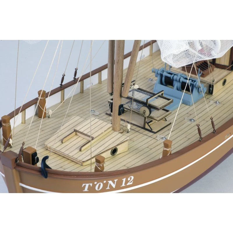 The Graupner crab-fishing cutter TÖN 12 KRABBE is a fishing vessel mainly operated in the North Sea. It is specifically designed for fishing crabs and carries a special type of purpose-designed rigging for the job. The large fishing nets are carried by two outrigger booms, heaved up almost to the mast during the run to the fishing grounds.