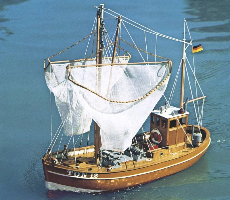 The model is scaled down to 1:25 scale from original plans and so configured as to satisfy even the most demanding modeller. The moulded hull contained in the kit, as well as the rudder- and keel shells and the crab cooking gear of touch plastic plus many injection-moulded plastic parts simplify the completion of the model and shorten the time requiring for building it. Equipped with its properly matched E-motor the model travels commendably fast.