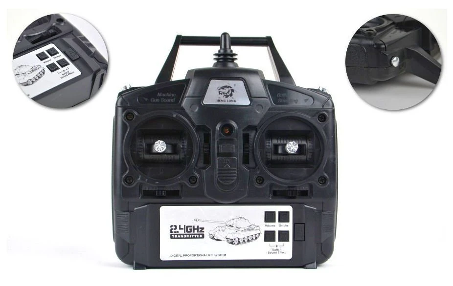 Fitted with a imprved 2.4GHz radio, giving you a much smoother proportional control on the tanks and turret plus a longer range that stops interference so multiple tanks can be used at once!