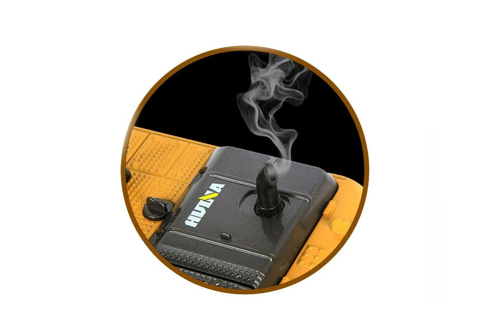 Just like a real excavator! Huina 580 is built entirely of metal: tracks, wagon, turret, cabin, boom, pistons and bucket are all made of a strong and heavy metal alloy that will ensure resistance, durability and operational stability. This model uses powerful proportional control engines that allow you to dig easily and efficiently. All arm movements are independent and perform work geometries comparable to a real excavator allowing you to dig with wide beams and even below the level of the tracks. The continuous rotating turret hides a sound module, a smoke generator and the battery compartment easily accessible. The robust undercarriage, made entirely of metal, houses a pair of powerful engines connected to the tracks.