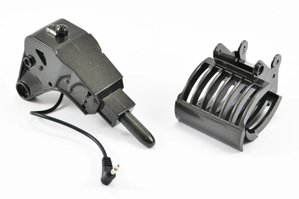 Your control station will be an intuitive 2.4 GHz radio control with LCD display. With it you will manage all the movements, you will activate the sounds, the lights on the arm and the smoke generator, moreover the comfortable LCD display will show you the battery status of the model. The controls are ergonomically positioned according to the standards of real excavators and you will be able to manage movements simultaneously and effortlessly. And to increase even more the realism, the model is also equipped with a really working demolition hammer and a selector that can be interchanged with the bucket.