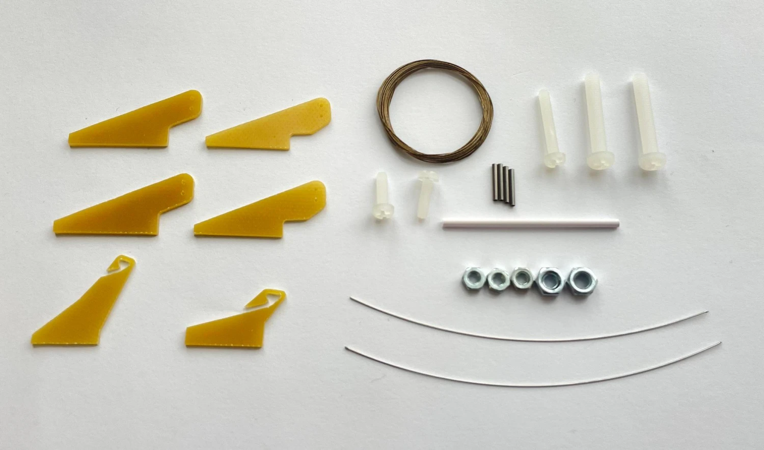 – Accessories pack that includes wing mounting bolts, nuts, pushrod material, GF control horns, pull-cables, torsion spring material, etc.