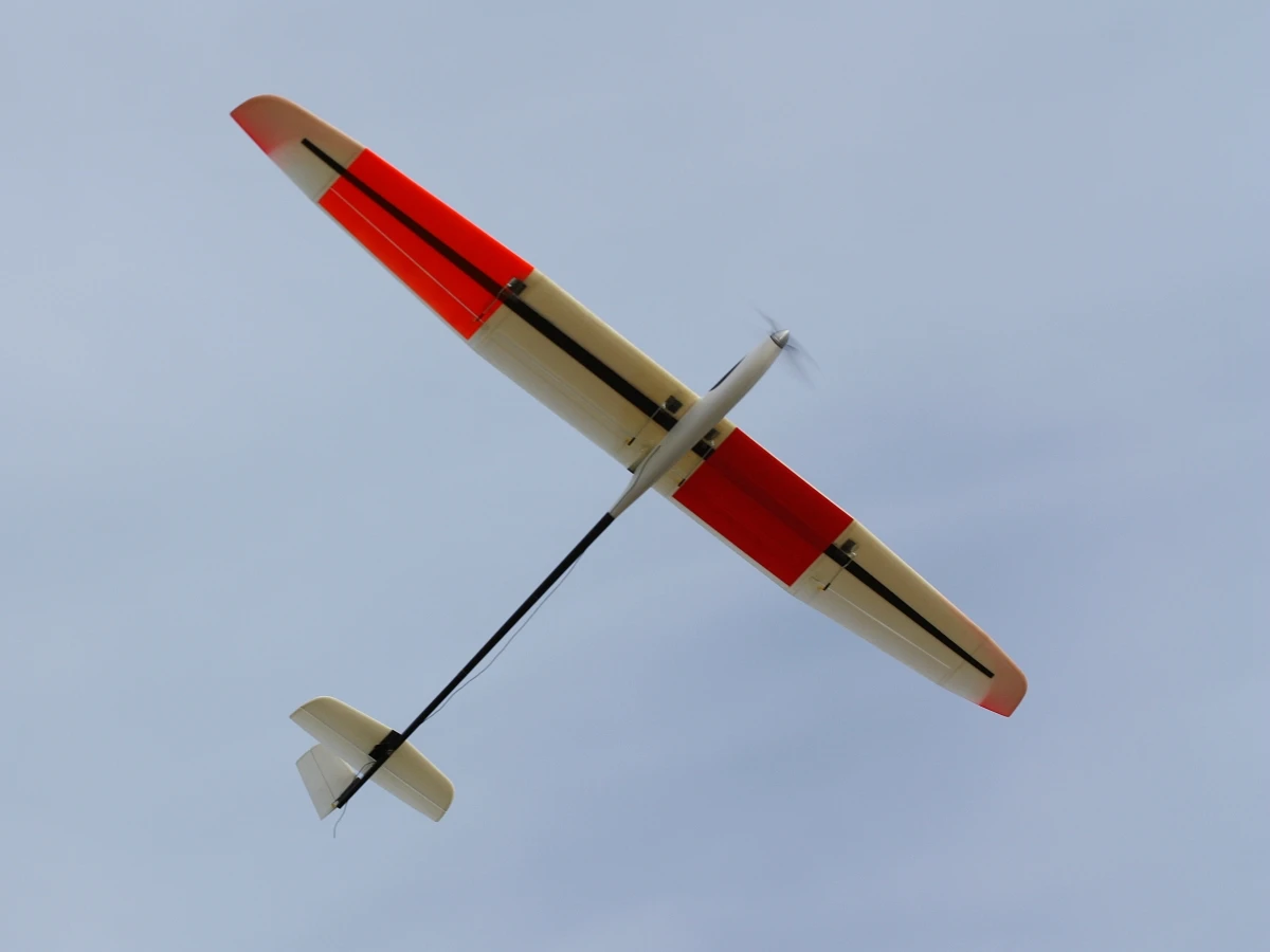 | Hacker A10-7L geared 4.4:1 | 3S 900mAh LiPo, 12×10 folding prop, 12A, 7.5m/s |
