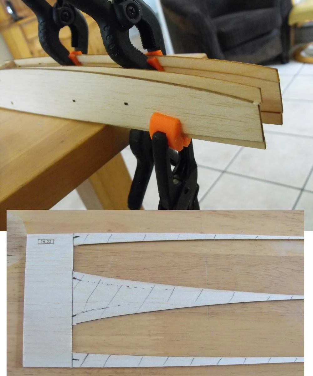 Stage 3. DO NOT throw away the matrix balsa sheet (76.02) the fuselage sides came from (you didn’t did you!). Why…… well the curved balsa infills you will need to make up the new fuselage sides on R3 and R4 are already there for you (clever eh…)…… see photo. Cut our and fix these as required.