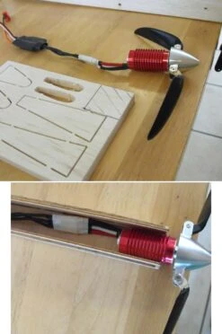 I am surprised how simple it proves to be. Firstly I did not use the two small diameter motors I bought from you as I found a 23mm diameter inrunner lying in a box….no idea what make it is, but it does run nicely on two cells using an Overlander 20A ESC (this latter may be a bit of overkill but better safe than sorry.