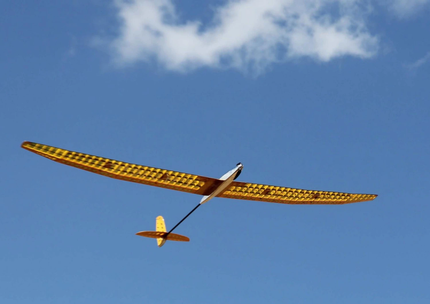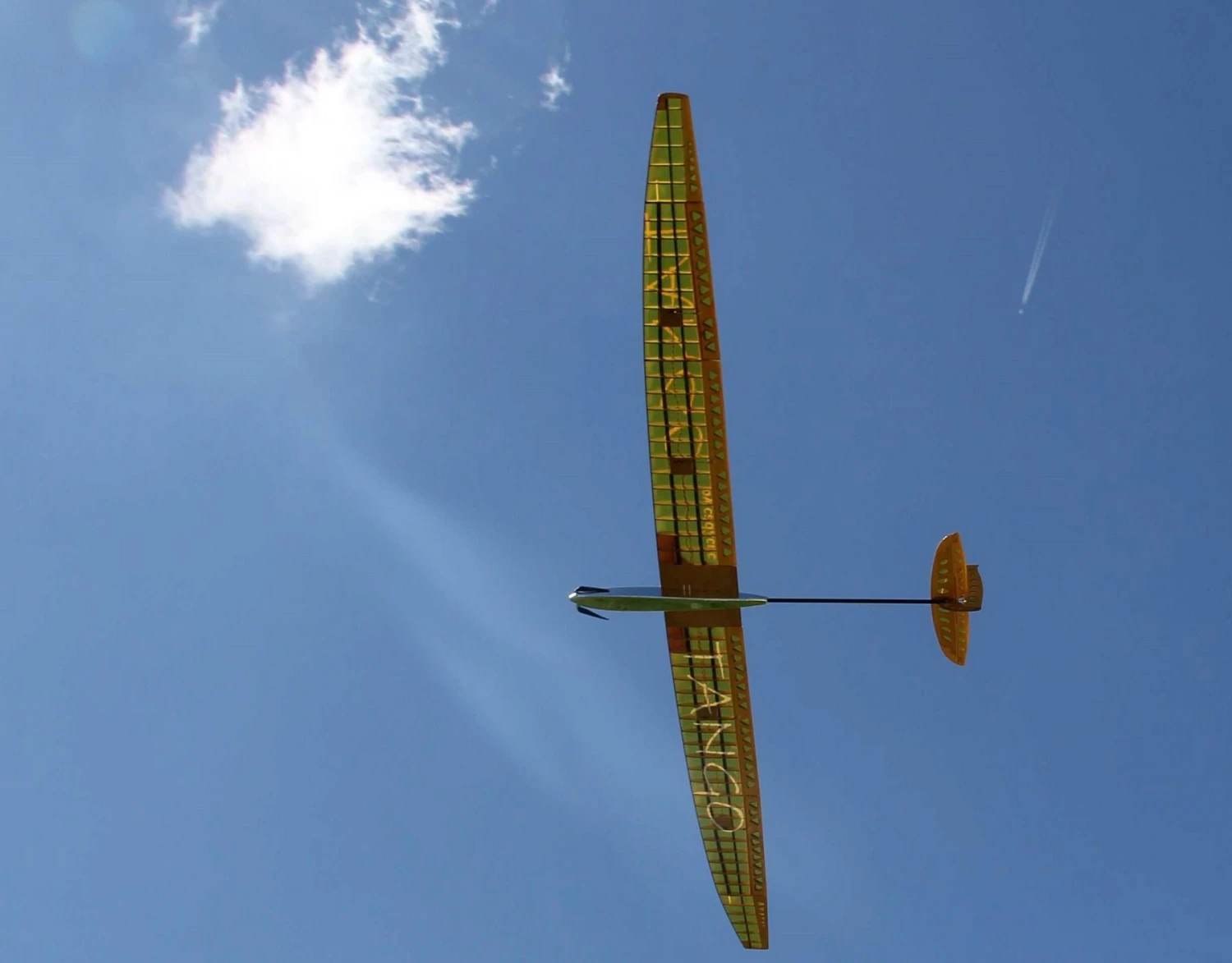 The Tango really likes to circle tight. After the development and before the serial production of the models the manufacturer built several models to really verify the data. They found the Tango can fly very slowly but also has a wide speed range. It was built to circle in the thermals and to land accurately. Both are possible to perfection. The 4 control surface wing can be adapted to any desired situation. Modern programmable transmitters offer countless possibilities.