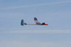 All components are bonded with easily available glue and the model’s construction is simple, considering the excellent performance potential. The fuselage is already prepared for a ballast tube, which can take weights up to 250g. The design allows the use of commercially available and easily obtainable components. The recommended battery is an Eneloop E-550 or 800mAh in cube form. Oralight covering is recommended. An adjustable tow hook is standard and is included in the kit.