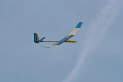 The large 2-part spoilers allow almost vertical descents without an increase in speed. The wing separates into three panels and the tailplane is removable making the model very easy to transport.